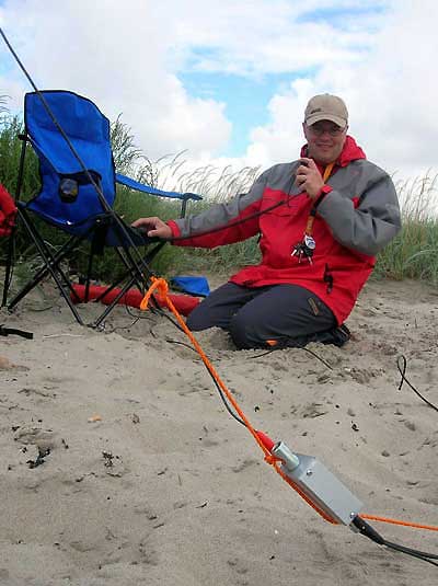 The 20-meter long antennewire was connected with the metallic box at the beach. It serves to divert the electro-static energy with an intern five megaohm ressistor to earth.