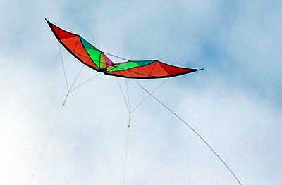 The Steeringkite with both steeringlines and the antennewire in the middle.
